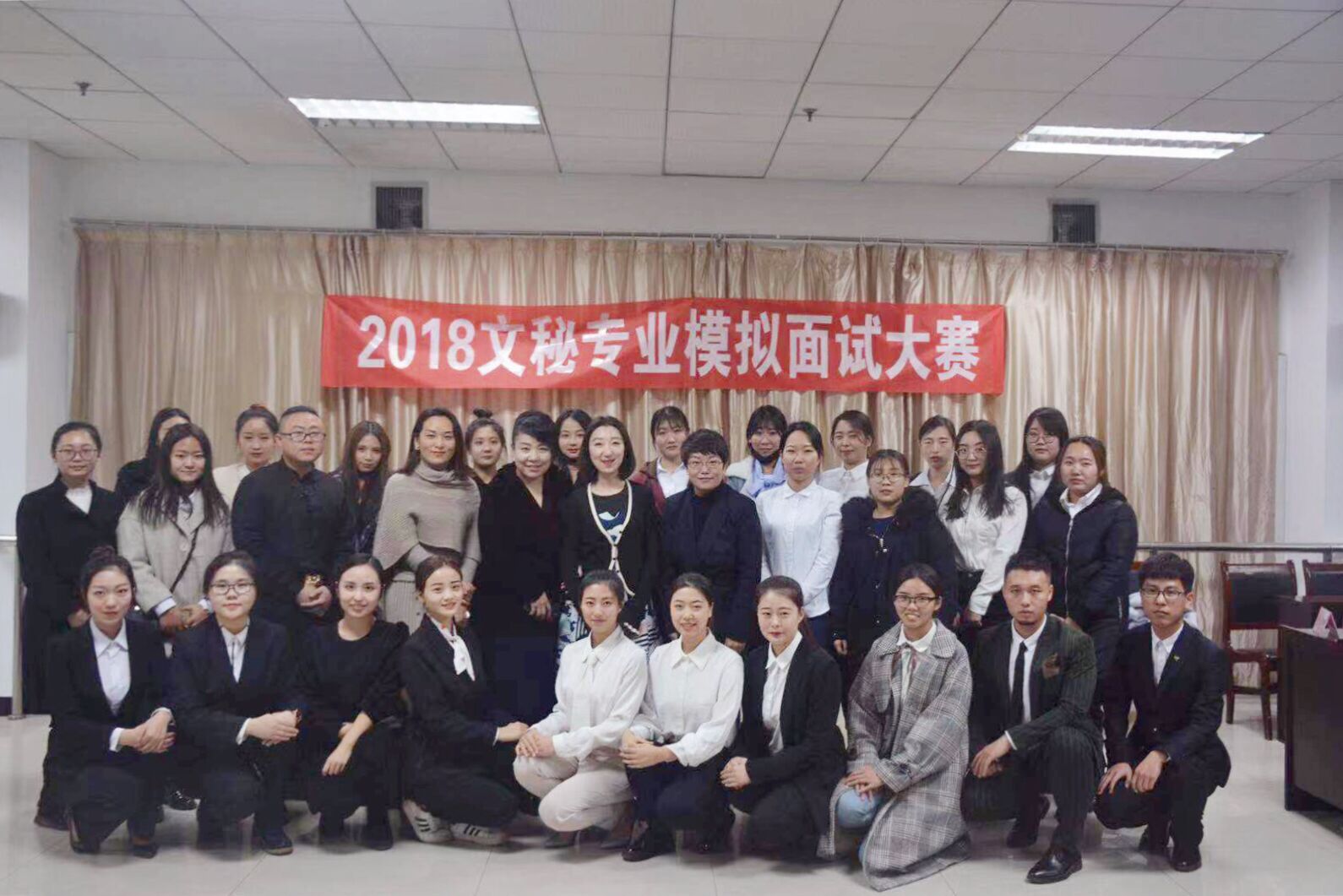 活动于2018年12月4日在中文系会务模拟实训室举行,香港绿生国际集团股份有限公司董事长孙千红、宝升昌控股有限公司人力资源总经理高新利等五位企业家代表以校外指导教师的身份担任面试官。参加模拟面试的学生来自2017级文秘专接本班,经过自我介绍、专业知识问答及面试官自由提问三轮考核,展示了秘书基本工作技能和突发事件的应急处理能力。各位面试官从自身的工作经验出发,对同学们的表现进行点评指导,也对秘书学专业课程建设提出了宝贵建议。最终,有六位同学在比赛现场拿到了直接进入企业工作的岗位邀请。