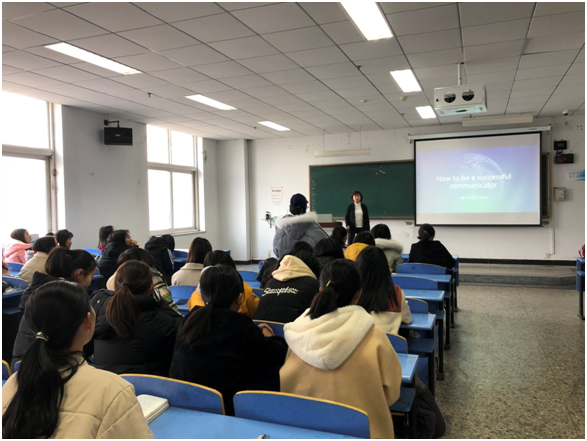 2018年11月24日上午,中文系特邀北京王府学校国际部周夕涵老师为汉语国际教育专业2017级、2018级的同学们带来一场主题为《How to be a successful communicator》的讲座。讲座分为三个部分,首先,周老师讲述了作为一名与国际接轨的教师必须具备的素质,然后介绍了我国国际学校的概况与发展。最后,周老师针对汉语国际教育专业的就业情况进行了展望,鼓励同学们努力学好外语和专业知识。此次讲座开拓了同学们的眼界,也使其对今后的深造与就业有了新的思考。