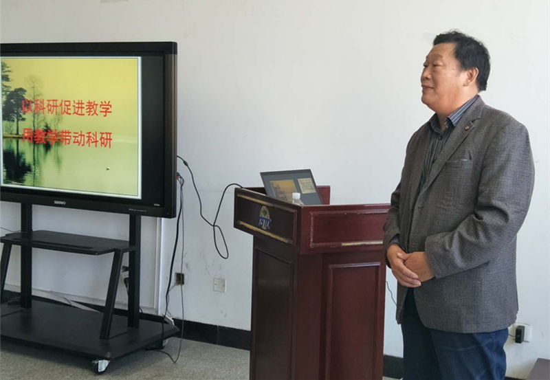 杨立元教授从教三十余年,其教授的《文学理论课》于2006年和2011年先后两次被评为河北省精品课程。杨立元教授从文学理论课程的教学改革经验出发,以切身体会阐释了如何做到“以科研促进教学,用教学带动科研”。随后,杨教授对中文系青年教师提出了希望,希望大家选准科研方向,用钉钉子精神深入钻研,同时淡泊名利,保持一颗平常心。
