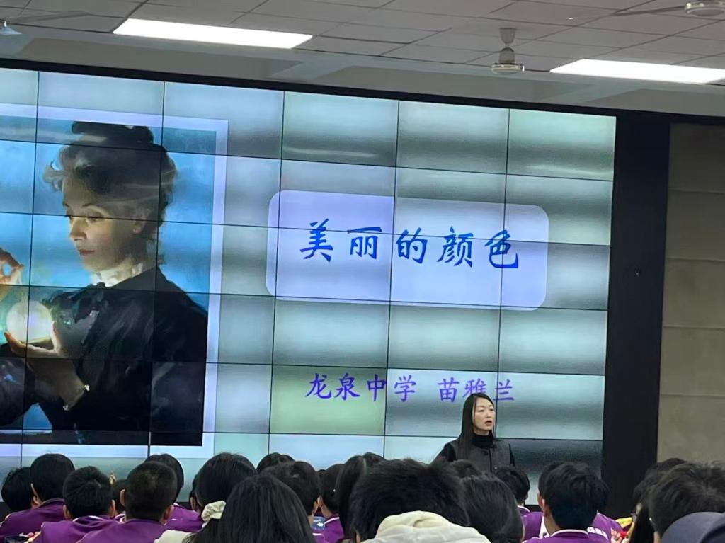 课堂伊始,苗雅兰老师以一副精妙的对联“天道酬勤,荣膺夫妻母女三诺奖;厚德载物,勇攀物理化学两高峰”作为切入点,迅速激发了学生的学习兴趣。在教学过程中,教师引导学生通过自读课文,学习并掌握了概括文章主要内容的方法。课堂气氛活跃,龙泉中学的同学们在教师的引导下积极思考、踊跃发言,展现出良好的课堂互动与教学效果。示范课结束后,苗雅兰老师和参与观摩的师范生进行了愉快的互动,为大家答疑解惑,同学们收获颇丰。