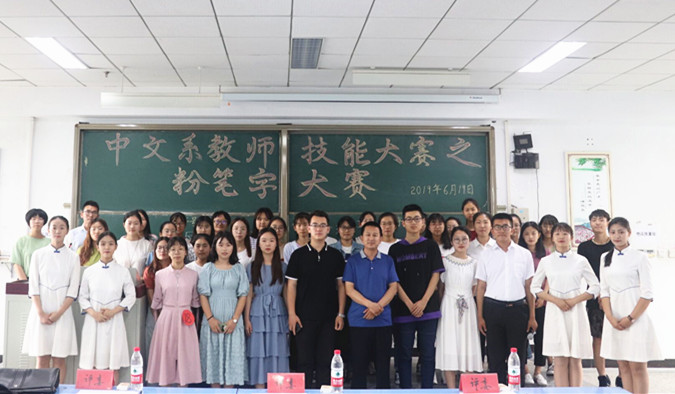 2019年6月19日下午,由中文系主办,心画书法社承办的中文系教师技能大赛之粉笔字大赛在北院文四阶梯教室成功举办。中文系党总支书记、书法教育研究所所长张学鹏教授,中文系党政办公室主任、书法教师许丽君老师,中文系辅导员、书法教师周予老师到场,中文系2018级汉语言文学专业全体同学参加了此次比赛。
