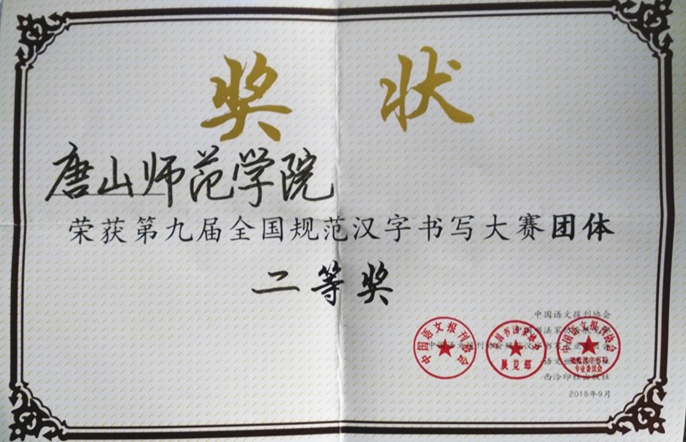 近日,由教育部中国规范汉字书写专业委员会主办的第九届全国规范汉字书写大赛评选结束,我系荣获团体二等奖,2017级汉语言文学专业马佳帅等45人的毛笔字、硬笔字荣获个人奖,张学鹏教授荣获指导教师奖。