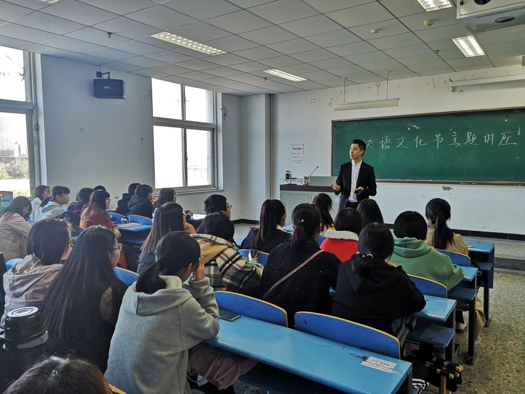 在唐山师范学院“汉语文化节”到来之际,为了让同学们更加深入地了解泰国,适应汉语国际教育的专业要求,2018年10月27日上午,中文系特邀泰国正大管理学院(PANYAPIWAT INSTITUTE OF MANAGEMENT)的黄伟荣(MR.SORASIT PHADUNGRUTCHADAKIT)老师与温惠娟(MS.SUCHAOINPUNYAWEE)老师做了主题讲座,中文系对外汉语教研室教室田甜、史玉欢以及汉语国际教育专业2017级和2018级学生参加了讲座。