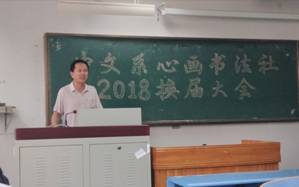 心画书法社指导教师、中文系党总支书记、书法教育研究所所长张学鹏教授参加了换届大会,他在讲话中指出,党中央、国务院发出号召,要加强美育,希望同学们以心画书法社为家,在学好专业的同时用心学习书法,传承优秀传统文化,提高文化艺术素养。