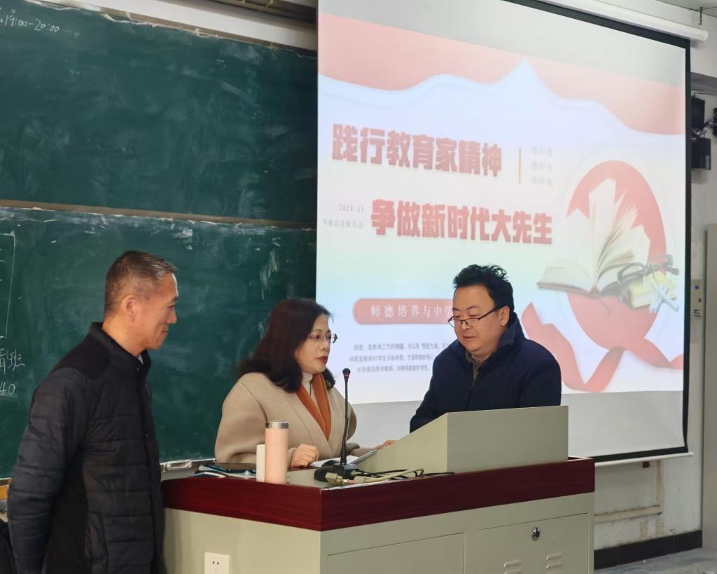 祁继原老师的报告从四个方面展开:探讨2024年教师节主题的深远含义;分析新时代对教师角色的需求;讨论新时代教师工作环境所面临的挑战;提示如何提升教师依法执教和文明教学的能力。报告中多次引用习近平总书记的讲话内容,让同学们受益匪浅,又从家、校、社会等不同角度,结合当今自媒体发展现状,深刻地向同学们展示了师德建设、弘扬教育家精神对教师成长的重要性。同时,祁老师还结合大量案例讲解了《中小学教师职业行为十项准则》,为同学们践行师德提供了很好的现实借鉴。