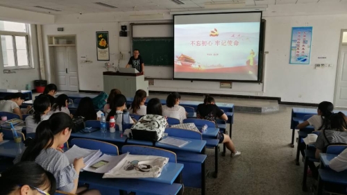 首先,赵老师提出了“不忘初心,牢记使命”的宣讲主题,并指出了这个主题的历史及现实意义,引发同学们的思考。