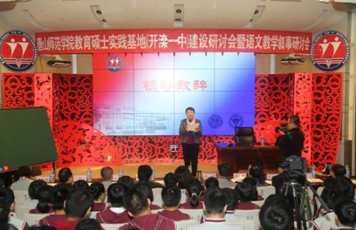 2016年10月22日,“唐山师范学院教育硕士实践基地建设研讨会暨语文教学叙事研讨会”在唐山市开滦一中隆重召开。河北省教育学会校园文化研究会会长、唐山师范学院校长杜彩芹教授出席会议并发表重要讲话。杜彩芹校长在讲话中指出,根据pp电子官网《“十三五”规划纲要》与《硕士学位点培育建设方案(草案)》的有关计划安排,学科教学(语文)学科领域教育硕士专业学位点建设,在国务院特殊津贴专家王相文教授的引领下,积极开展了建设工作,在学科教学(语文)教育硕士实践基地建设中,与开滦一中、唐山二中、滦南一中达成战略合作,取得了良好发展。今天在这里举行的既是第一次基地学校集中教研活动,也是我们汇聚各方力量,争取更好基地建设成绩的一次动员会和誓师会。希望唐山师范学院与三所优秀中学携手并肩,以适应人才需求为目标,以基地建设为纽带,以案例研究为突破口,充分发挥各自优势,构建人才培养、科学研究、成果转化、互惠共赢、资源共享的合作平台,有力促进我市的教育教学工作发展,为建设经济强省、美丽河北做出更大贡献。