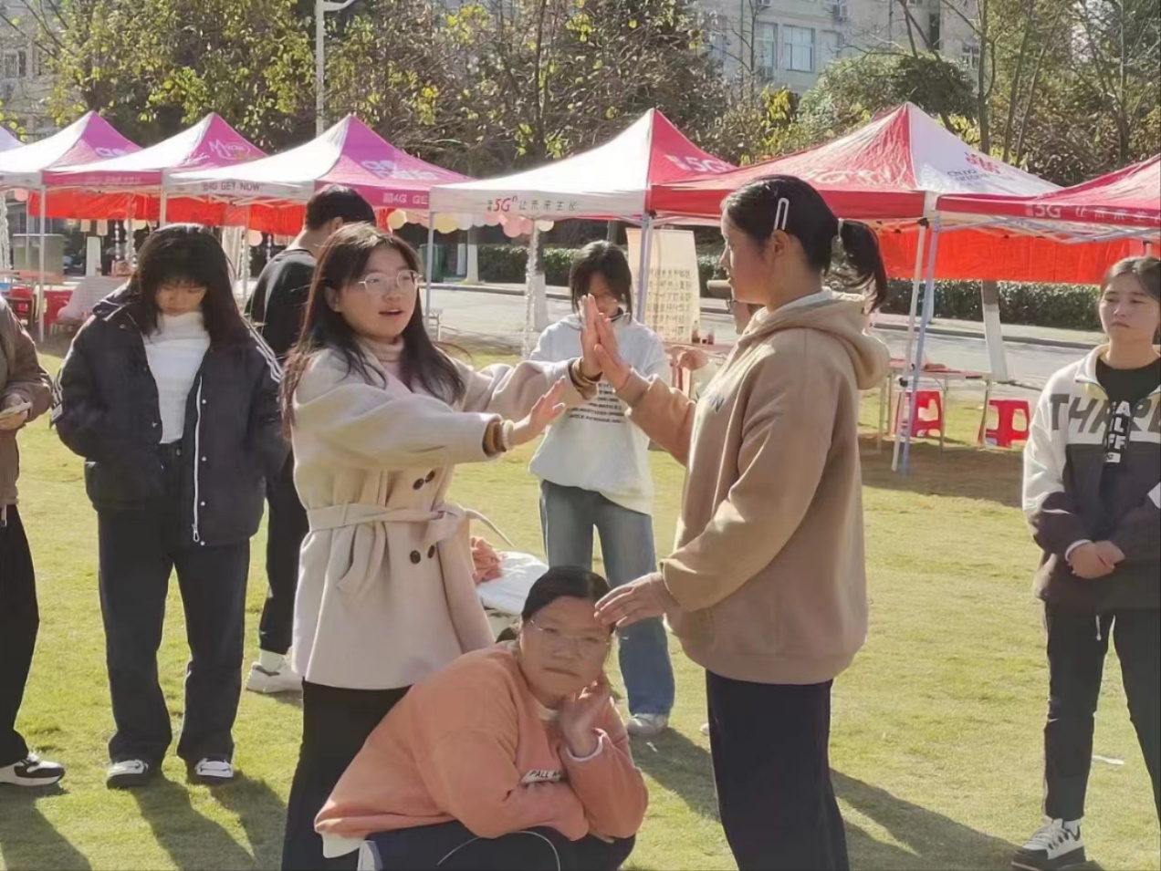 前期准备工作主要分为实地调研和团体心理辅导两个部分。实地调研时,袁战阳老师和陈一桉在大别山志愿者协会周老师的带领下来到到高粱店乡中心中学,同吴文艺副校长了解学生具体情况,完成人数及场地等情况的对接,以方便后续活动的展开。同时,在大学生心理健康辅导协会的帮助下,对参与活动的同学进行团体心理辅导相关知识的团体培训。通过团体游戏,加强同学们对团体心理辅导的认识,让同学们在游戏中释放压力,增进彼此的联系。