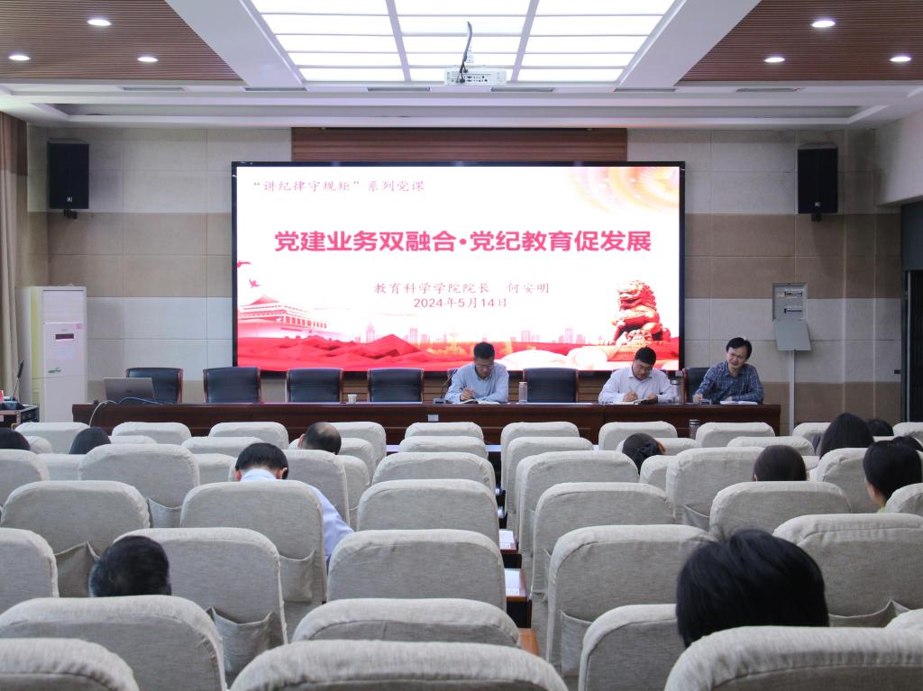 永利集团3044官网欢迎您院长何安明以《党建业务双融合·党纪教育促发展》为题,讲授专题党课。他提出,党的纪律建设是确保党的事业长久发展的根本保证,要将党建贯穿于学科专业发展与师资队伍发展,应注重将党纪学习教育与师德师风建设有机结合起来,以党的科学理论武装青年,努力为师生创造良好的科研氛围和发展条件,引导青年加强科学研究,确保教学不落后,实现教学与科研双向促进。