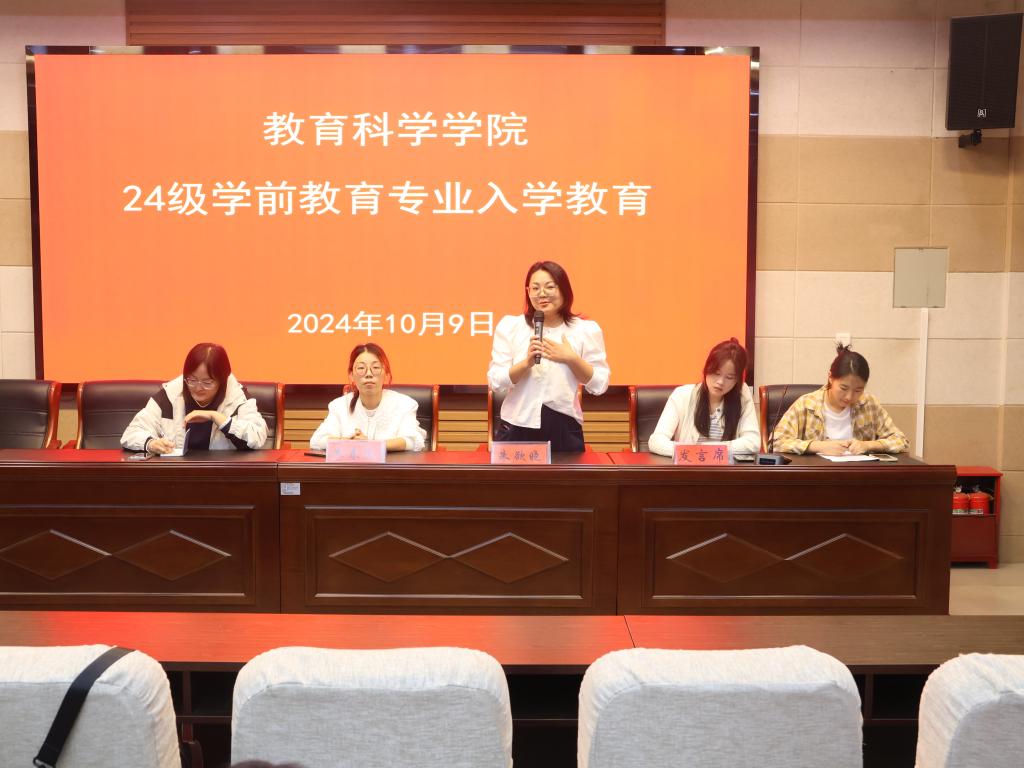 会上,朱春蕊分别就学习、考研、实习、就业等情况进行详细的分析,并对专业课程和授予学士学位条件进行讲解。朱欲晓通过叙述自己的亲身经历向新生介绍了学前教育专业的魅力,激发同学们对学前教育专业的理解与热爱。杨艺卓希望大一新生尽快适应大学生活并提出两点建议:一是把握时间,珍惜当下,二是做好四年的学习规划。随后,21级和23级学前教育专业学生代表发言,表达对学弟学妹的欢迎,鼓励新生学会独立,敢于试错。24级新生代表张露涛和朱傲然进行发言,讲述自己作为新生对学前教育专业的认识以及以后努力的方向。最后,进入提问环节,新生积极提问,老师们耐心解答,会议现场气氛热烈,同学们纷纷表示对学前教育专业有更深刻的了解。
