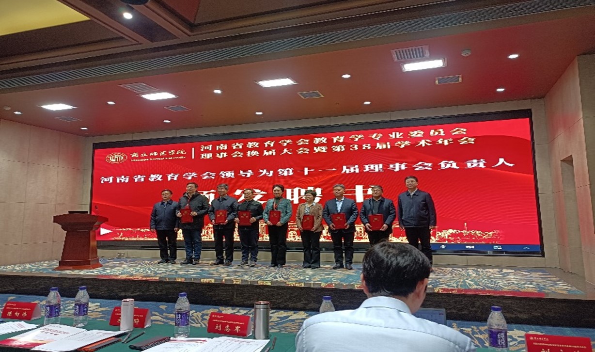 12月28日上午,河南省教育学会教育学专业委员会理事会换届大会召开。我校是河南省教育学会教育学专业委员会的常务理事单位,郭勇副院长当选为河南省教育学会教育学专业委员会第十一届理事会副理事长,郑雪松教授、杨建朝教授、周娜副教授、黄亚栋老师分别当选为理事。