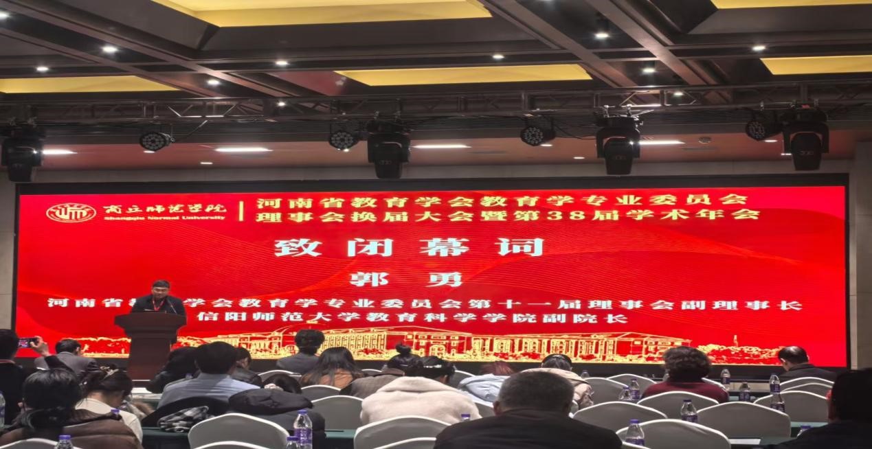 作为河南省教育学专业委员会第十一届理事会副理事长郭勇副院长致闭幕词。他对本次年会给予了高度评价,并鼓励广大教育学人以此为契机,学习前辈们专注钻研、精益求精的精神,在教育领域不断探索创新,为教育事业的繁荣发展贡献力量。