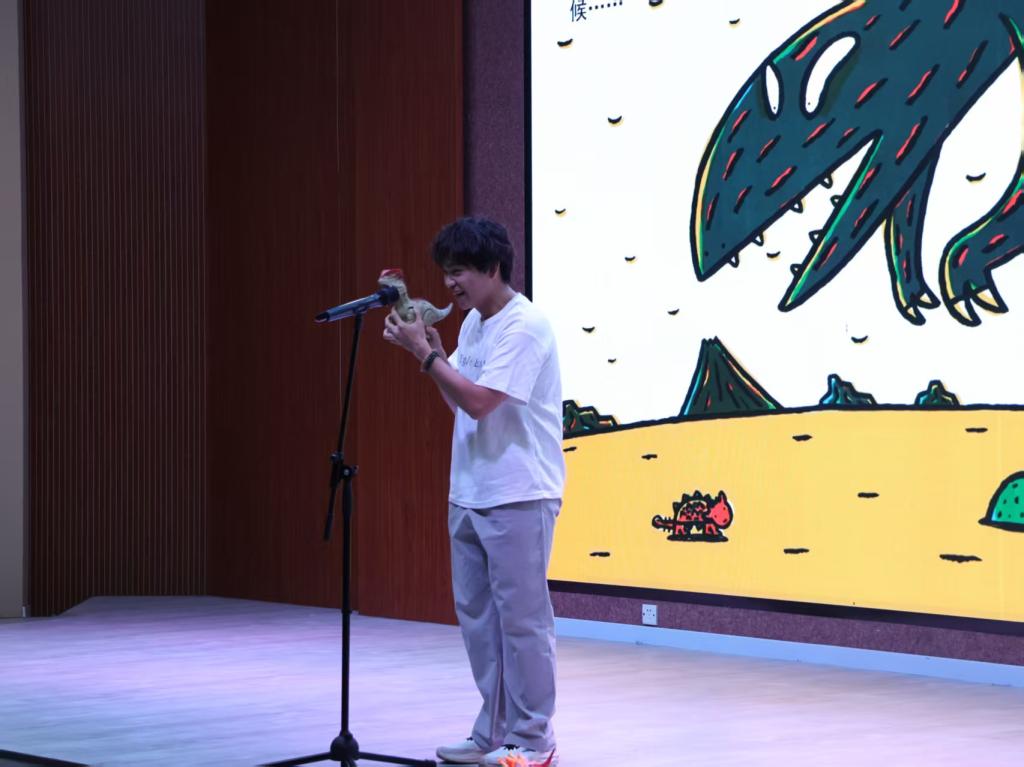 本次大赛分为个人赛和团体赛。在讲演过程中参赛选手与台下小朋友积极互动,现场气氛热烈。个人赛中,选手们化身“故事魔术师”,在绘本《你看起来好像很好吃》表演中,选手以细腻的情感与活泼的语调手持恐龙小模型,重现霸王龙和小甲龙的温暖故事。团体赛更是把气氛推向高潮。在绘本《三只小猪》表演中,学生们像被施了魔法,他们借助道具、场景模拟,把经典故事讲的妙趣横生。评分环节,唐综儿童为我们带来了精彩的非洲鼓表演。最终,大赛评出一、二、三等奖。