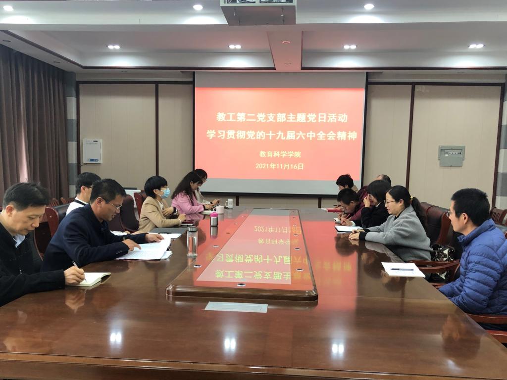 时间:2021-11-18 09:20:28 来源:教科院新闻部 作者:张纪娥 周媛媛 阅读: 次中国共产党第十九届中央委员会第六次全体会议于2021年11月8日至11日在北京举行。连日来,永利集团3044官网欢迎您广大师生密切关注全会盛况,认真研读全会公报和习近平总书记的重要讲话,不断深入学习贯彻党的十九届六中全会精神,学院党委中心组、党支部分别开展全会精神学习研讨活动。