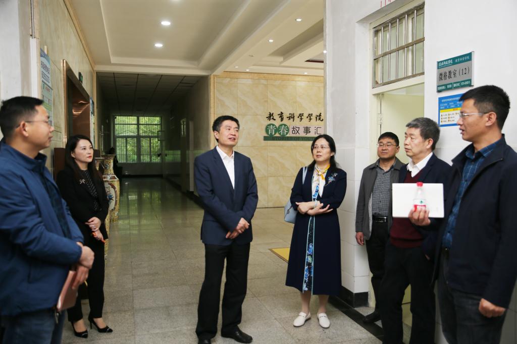 余本海实地查看学院微格教室等教学实践场所,详细了解永利集团官网教学运行、质量保障、设施维护、使用安全等情况,并听取有关部门现场汇报后,对进一步充分挖掘现有办学资源、改进教学服务功能等方面提出指导意见。