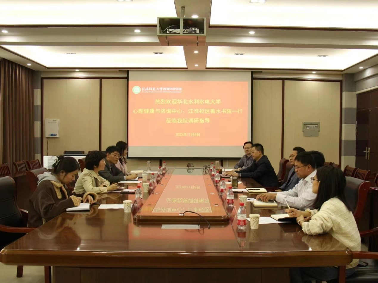 时间:2023-11-09 11:41:19 来源:教科院新闻宣传中心 作者:吴宇熙 祐亚菊 阅读: 次11月8日,华北水利水电大学心理健康与咨询中心主任宋凯果,善水书院院长车华,心理健康与咨询中心张丽娅,善水书院心理二级站李迅仪一行来永利集团官网调研交流。校大学生心理健康辅导中心主任、学工部副部长李贵杰,永利集团3044官网欢迎您党委书记房加帅,党委副书记董银银,副院长郭勇、孙天义,团委书记牛洁楠出席会议。会议由房加帅主持。