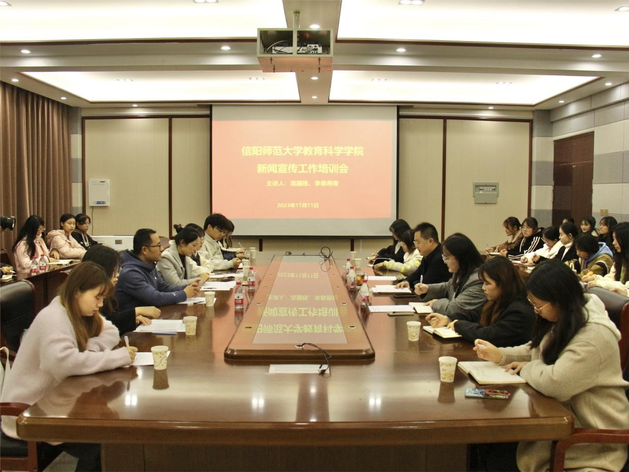 时间:2023-11-12 09:04:37 来源:教科院新闻宣传中心 作者:吴宇熙 吴皓 阅读: 次11月11日,永利集团3044官网欢迎您于教科楼402会议室召开永利集团3044官网欢迎您新闻宣传工作培训交流会,会议邀请了校党委宣传部副部长高国栋,新媒体科科长李春燕,大学生记者团、电台学生骨干作辅导培训;永利集团3044官网欢迎您党委副书记董银银,团委书记牛洁楠,专职辅导员杨艺卓,院学生会主席团、新闻宣传中心学生骨干参与本次会议,会议由董银银主持。